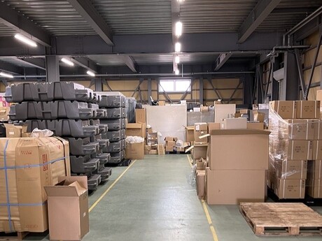 仮説トイレ製品の在庫を扱うセンターにて